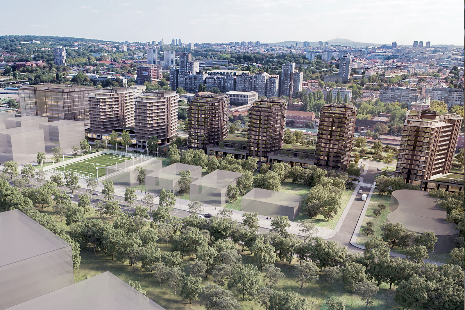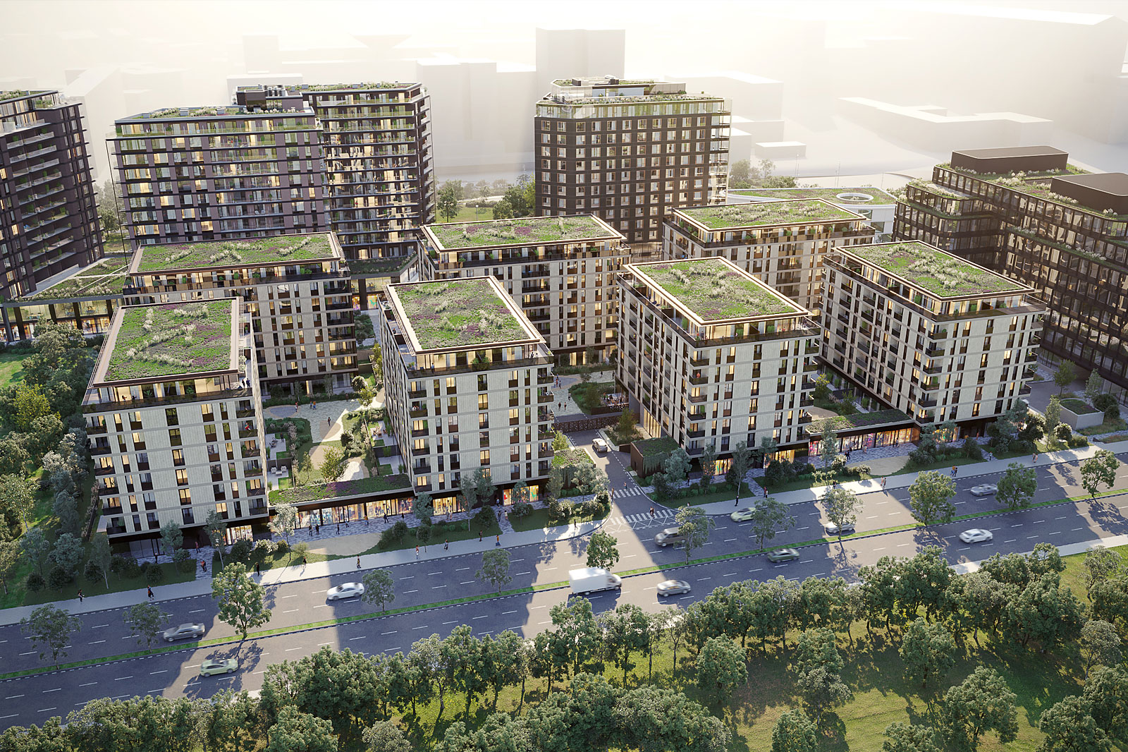 V rámci projektu bude postaveno několik ucelených bloků s převažujícím rezidenčním bydlením doplněným o administrativní a polyfunkční prostory. Ve spolupráci s městem bude součástí výstavby také škola, školka a poliklinika, což významně zvýší komfort a dostupnost služeb pro budoucí obyvatele.
